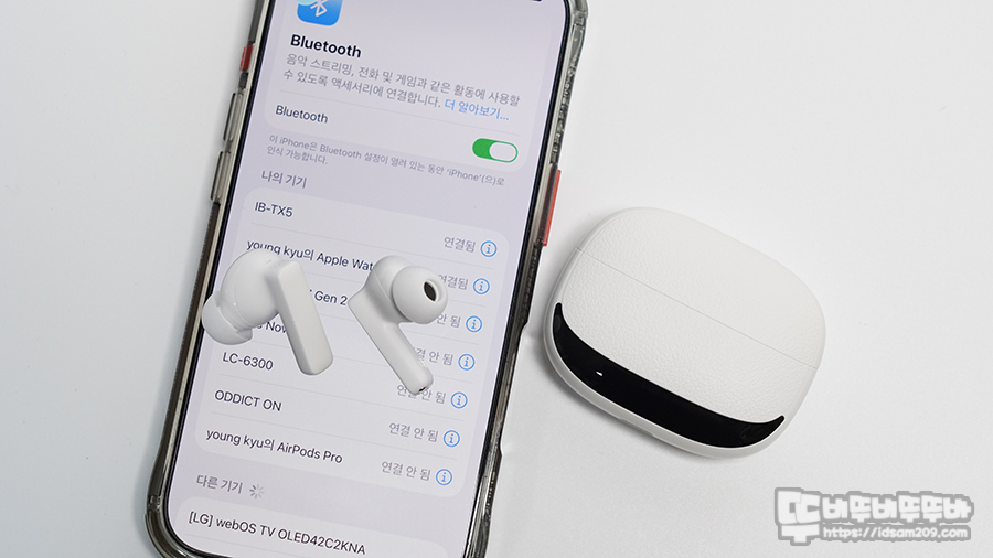 최초 충전 케이스에서 이어버드를 꺼내면 자동으로 페어링 모드로 진입하며 스마트폰 블루투스 기기 리스트에서 IB-TX5를 선택하면 페어링이 되며 이후 부터는 무선 이어버드를 꺼내면 자동으로 연결되는 오토 페어링으로 사용하게 됩니다.