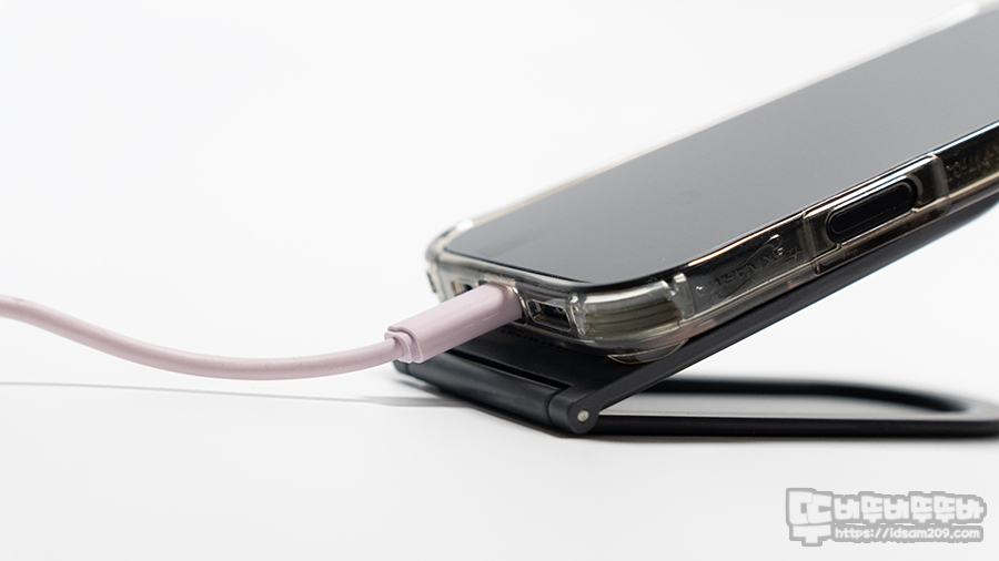 이 제품을 사용하면 추천하는 이유는 맥세이프를 지원하는 접이식 충전기보다 (거치해 놓으면 뒤로 천천히 넘어간다는..) 튼튼하게 각도를 유지하는 제품이라 꼭 충전이 아니더라고 책상 위에서 작업을 하다가 문자나 알림이 왔을 때 페이스 ID에 최적화된 각도를 만들어 주기 때문인데요.