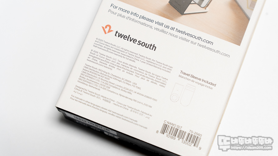 패키지에는 제품의 특징을 잘 표현한 이미지와 브랜드명 트웰브사우스, 커브 나노 제품명을 확인할 수 있습니다.