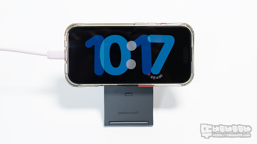 본격적으로 트웰브사우스 커브 나노 맥세이프 탁상용 핸드폰 거치대를 사용해 보기 위해 세로 방향으로 거치를 해보았습니다.