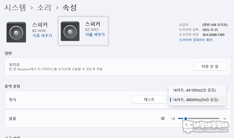 USB 연결 시 16bit / 48kHz 수준의 준수한 사운드 품질을 경험할 수 있으며, 두 모델 모두 동일한 DAC가 내장된 것을 확인할 수 있습니다.