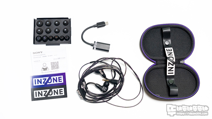 10Hz ~ 2kHz의 응답 주파수는 지원하는 5mm 드라이버가 적용, MMCX 타입 케이블, 4.7g의 이어폰 유닛 무게, 귀 뒤로 넘기는 행거 형태의 오버이어 방식, USB-C to 3.5mm로 구성된 DAC는 전용 소프트웨어인 INZONE HUB를 설치가 필요합니다.