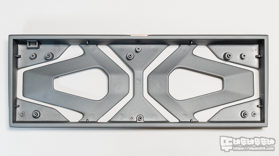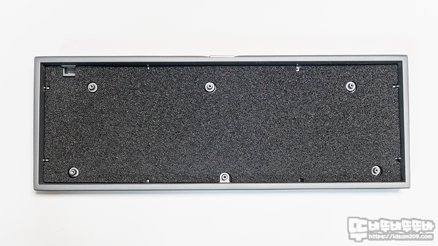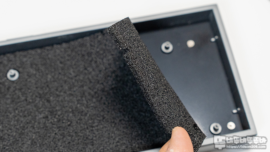 보강판 밑에는 두툼한 발포폼 느낌의 흡음재가 사용되어 타이핑 시 기판으로 전해지는 충격을 완화해 주는 역할을 하고요.