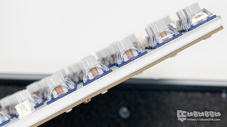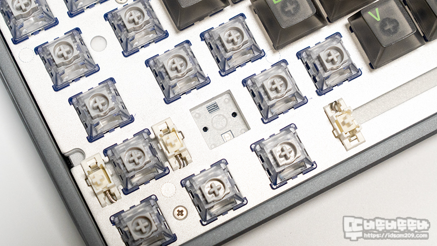 자석축이기에 핫스왑이 지원되는 부분은 대부분 자석축이 가지는 공통사항이기에 큰 차이는 없지만, 알루미늄 보강판과 기판 사이에 다양한 흡음재를 사용하는 만큼 통울림 없는 안정감 있는 타이핑 사운드를 제공합니다.