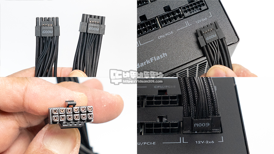 풀 모듈러 방식의 파워는 여느 모듈러 파워와 다를 게 없지만 ATX 3.1 규격 설계 및 12V-2x6(12+4) 소켓을 지원하는 게 특징이네요.