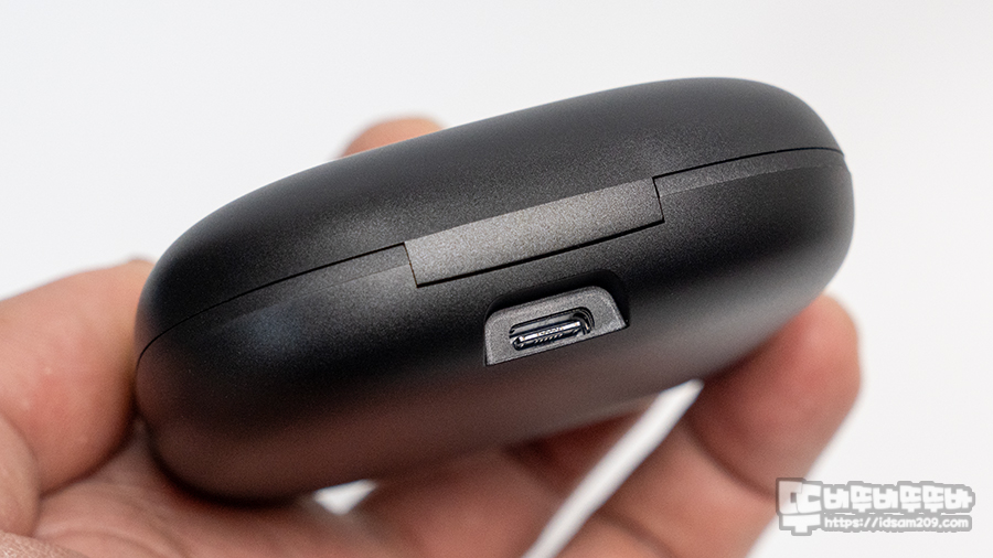 뒷면에는 USB-C 충전 단자가 위치하고 있어 편리하게 충전이 가능하며, 조금 아쉬운 점이라면 휴대를 편하게 할 수 있는 스트랩을 제공하지 않는 점이네요.