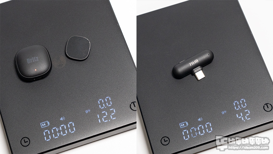 각각의 무게를 확인해 보면 마그네틱 클립이 포함된 마이크는 약 12.2g, USB-C 무선 수신기는 약 4.2g으로 가벼운 편입니다.