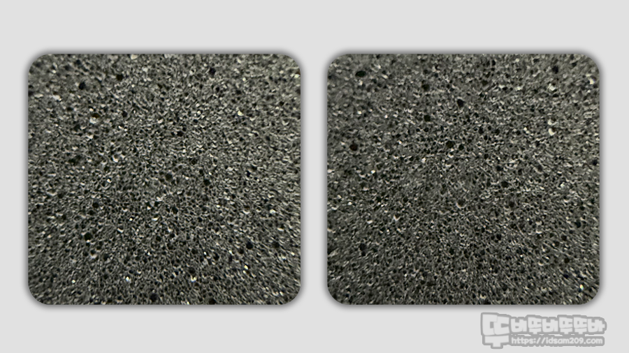 확대경으로 보았을 때 이 정도지 실제 표면을 만져보면 부드러운 느낌을 주는데요.