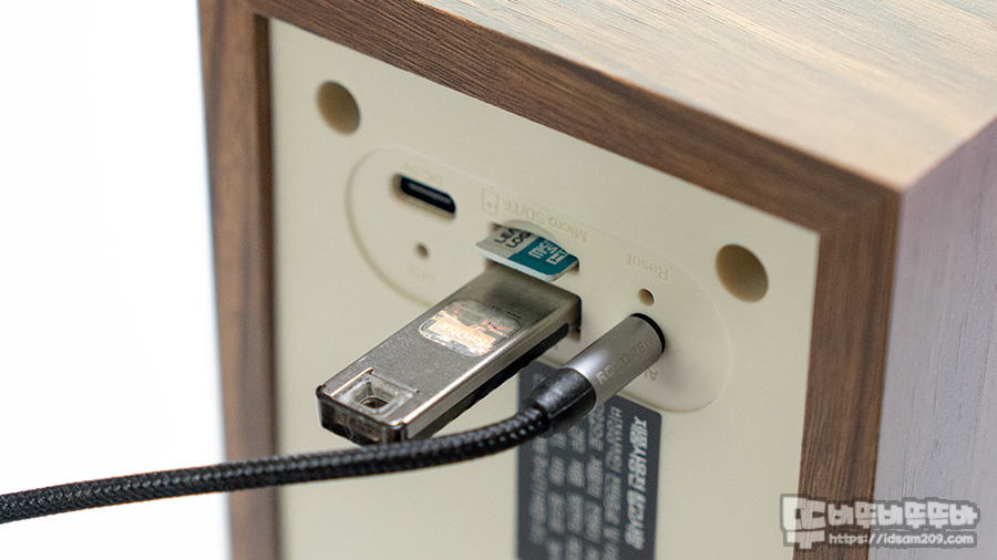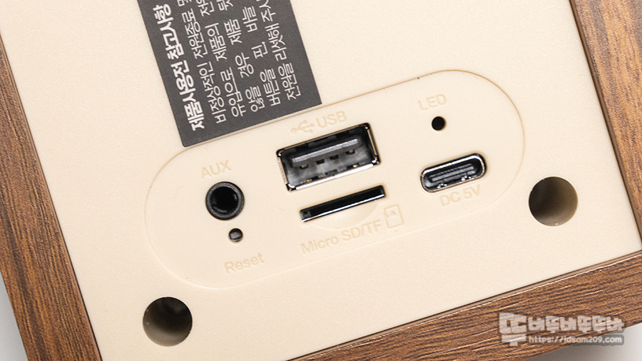 FM 라디오, 시계/알람 기능, MicroSD, USB 메모리를 이용한 MP3 재생과 노트북이나 PC의 사운드 출력을 연결하여 들을 수 있는 AUX 입력도 가능하여 단순히 블루투스 스피커로 국한하지 않고 다양한 소스로 사용할 수 있다는 점이 강점이네요.