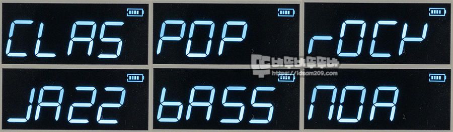 음악 재생 중 EQ 버튼을 누르면 클래식-팝-락-재즈-베이스-노멀 순으로 음색을 변경할 수 있어 장르에 최적화된 사운드를 즐길 수 있습니다.