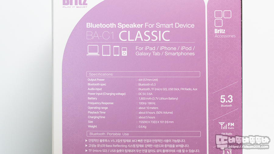 이상으로 브리츠 신제품 BA-C1 Classic 블루투스 스피커 리뷰를 마칩니다.