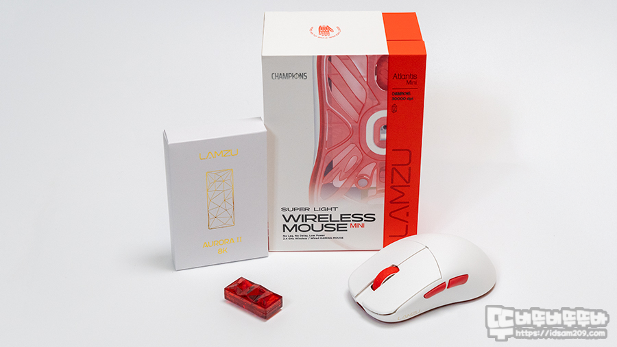 LAMZU 람주 아틀란티스 미니 챔피언 게이밍 무선마우스 8K호환 화이트레드 : 와이피게이밍기어