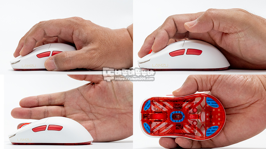 최근 들어 미니 사이즈, 경량형 마우스를 자주 사용해서 그런지 미니 사이즈가 그립감이 더 편하게 느껴지는데 LAMZU 람주 아틀란티스 미니 챔피언 게이밍 마우스의 경우 그립과 더불어 버튼부의 접지가 편해서 그런지 편안합니다.