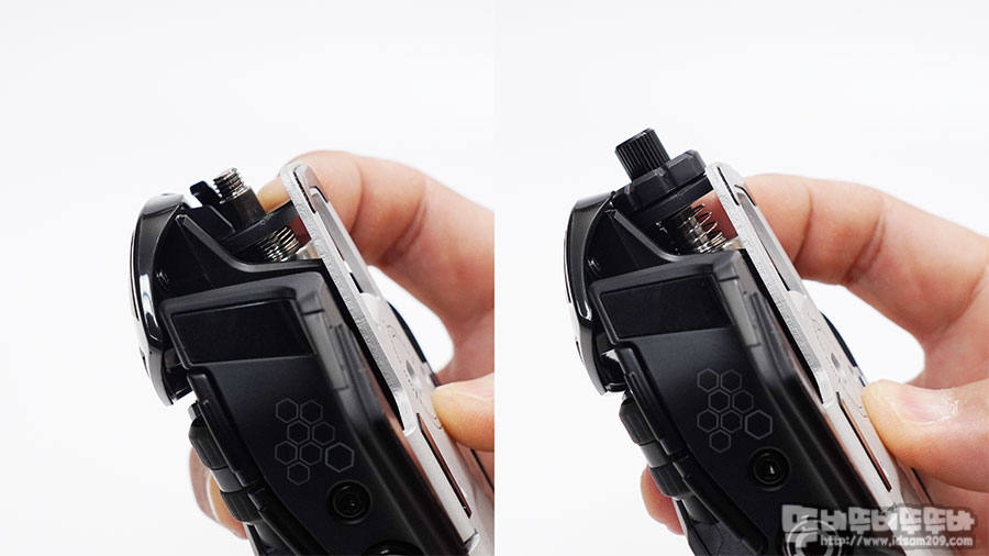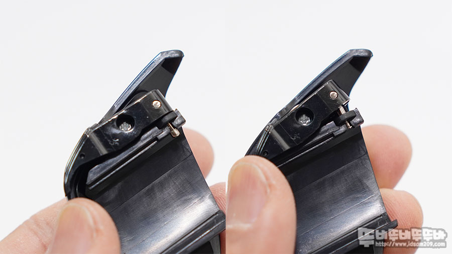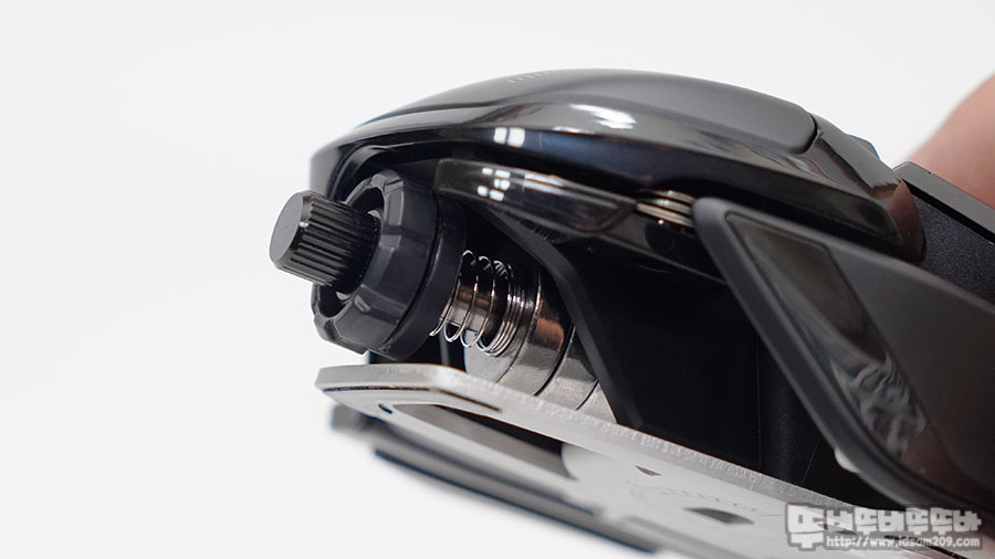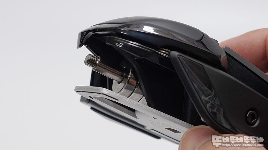 전형적인 오른손잡이 디자인으로 8+의 오른쪽 사이드 그립 각도조절과 왼쪽 사이드 그립 교체 파트를 지원하지 않는 것이 가장 비교 포인트가 될 거 같고요.