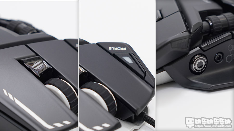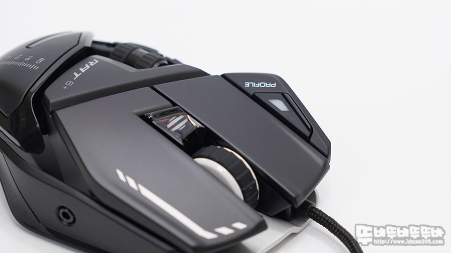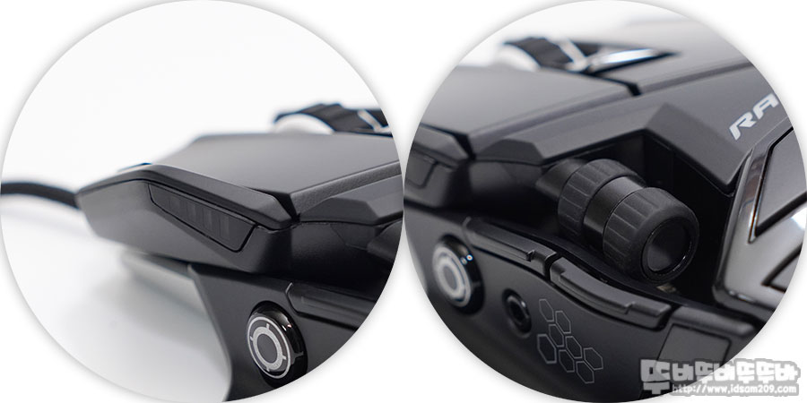 MadCatz R.A.T 6 PLUS 게이밍 마우스의 우측 사이드 패널을 고정된 디자인으로 스나이핑 버튼은 그대로 지원하고 있고요.
