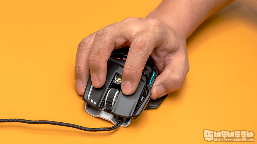 MadCatz R.A.T 6 PLUS의 특징이라면 절개형으로 디자인된 버튼 면적이 수평 형태로 되어있어 어느 부위를 눌러도 편안하게 사용할 수 있다는 점입니다.