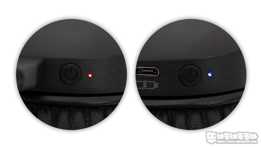 충전 스탠드가 PC와 연결되면 전원 LED (Blue 컬러)가 점등되며 헤드셋이 올려지면 전원 LED가 꺼지고 충전 LED 인디케이터가 Red 컬러로 점등됩니다.