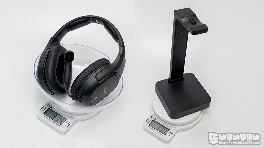 헤드셋은 1g 단위로 측정 가능한 디지털 저울로 무게 측정 시 약 314g, 충전 거치대는 약 170g으로 확인되네요.