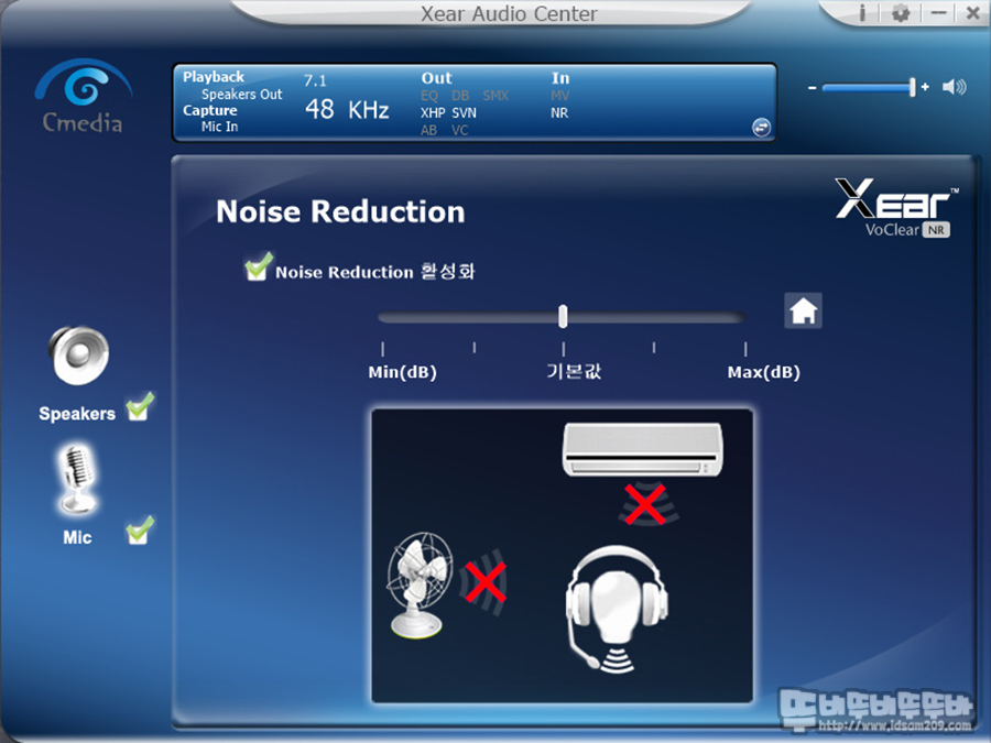 마이크 관련 설정에서는 눈에 띄는 옵션은 노이즈 리덕션인데요.