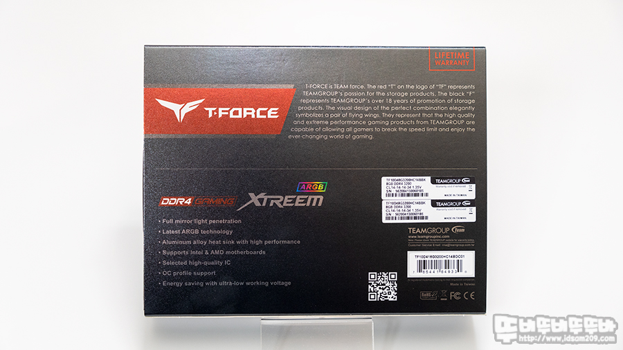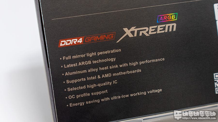 패키지 뒷면에는 T-FORCE에 대한 설명과 XTREEM ARGB 특징이 설명되어있는데요.