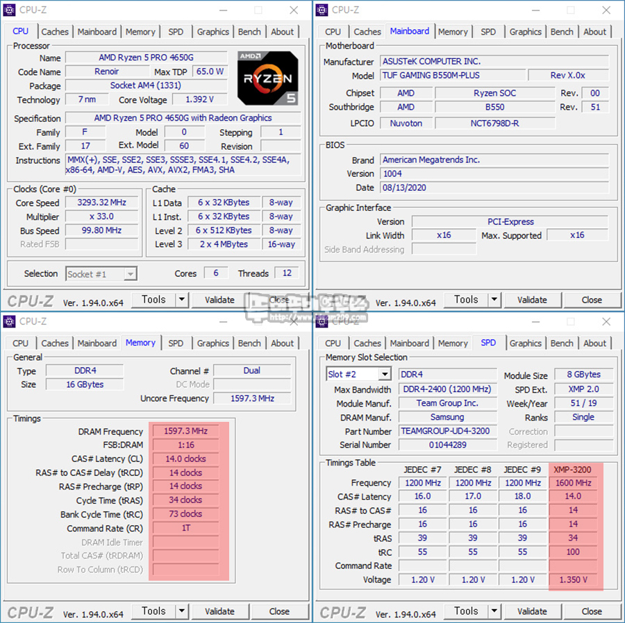▶ CPU-Z 정보 (XMP 2.0 적용)