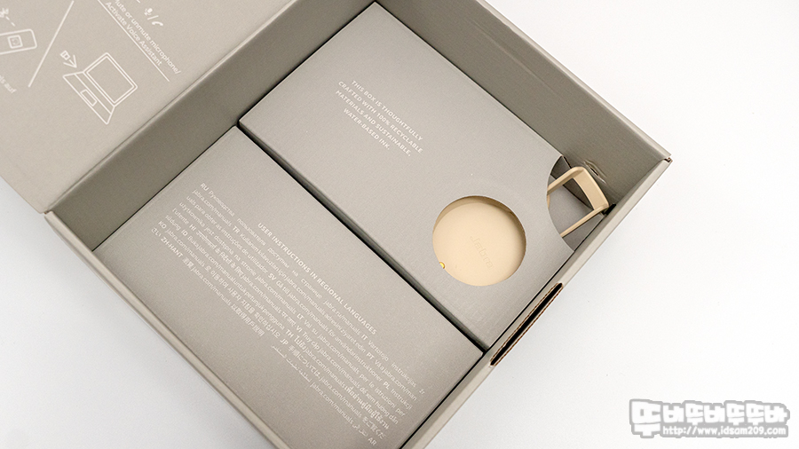 커버를 벗겨내고 패키지 박스를 오픈하면 깔끔하게 디자인된 파우치를 마주하게 되는데 파우치 아래 공간에 충전 스탠드가 있는 것을 확인할 수 있습니다.