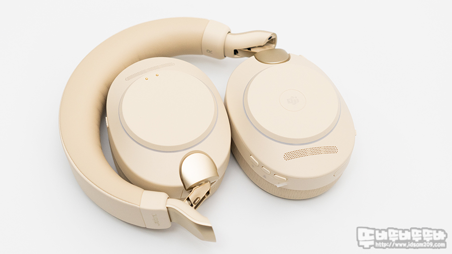 이어컵 하우징이 돌아가는 플립 구조와 헤어밴드 안쪽으로 접히는 폴딩 디자인은 휴대성을 높이기 위한 부분이지만 책상에 올려놓을 때 응용하시면 좋을 거 같네요.