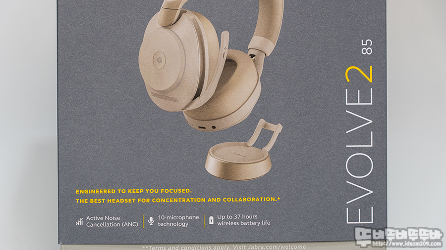 Jabra Evlove2 85는 40mm 드라이브 유닛, 블루투스 5.0 탑재, 10개의 마이크 내장(아날로그 4개, 디지털 6개), 하드웨어 노이즈 캔슬링 (ANC) 지원, 충전 시간 2시간 20분, 사용시간 최대 37시간을 지원하는 무게 286g의 인체공학 디자인이 적용된 헤드셋으로 착용감이 좋고 오래 사용해도 무게감이 느껴지기 않는 편입니다.