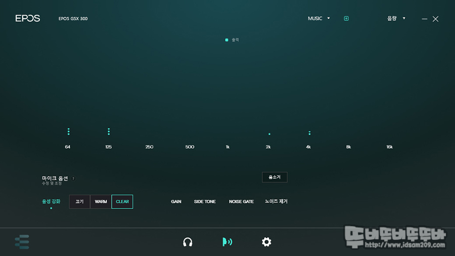 보통의 사운드카드에서는 EQ 설정을 해도 변화폭을 느끼지 못해 개인적으로는 사운드카드의 EQ 설정을 거의 만지지 않는 편인데 GSX 300는 EQ 설정에 따른 사운드 변화가 명확해서 EQ 설정으로 다양한 사운드 경험이 가능합니다.