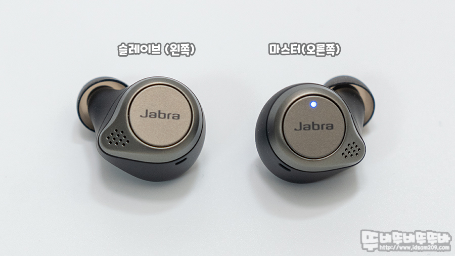 자브라 엘리트 75t는 스마트폰과 연결 그리고 슬레이브의 연결을 마스터인 오른쪽 이어버드가 담당하고 있습니다.