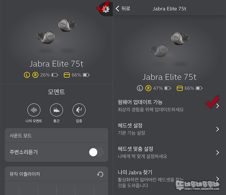 기본 성능이 좋았던 자브라 엘리트 75t에 펌웨어를 통한 액티브 노이즈 캔슬링 (ANC) 지원은 정말 획기적이었습니다.