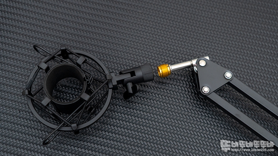 마이크 스탠드 끝 부분의 쇼크 마운트를 결합하면 기본적인 조립이 끝나게 되는데요.