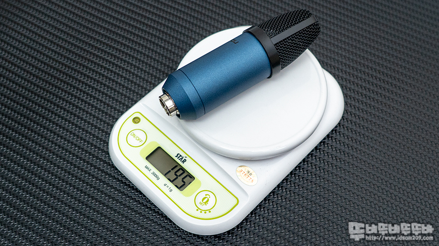 1g 단위로 측정 가능한 디지털 저울로 측정 시 약 195g 무게를 확인할 수 있으며 3.5mm to XLR 방식의 케이블을 이용하여 연결하는 간단한 구조로 되어있습니다.