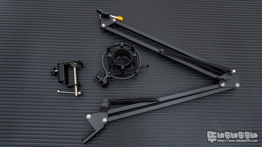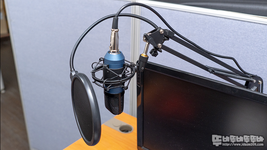 보통의 책상 상판에 뒤쪽이나 측면에 책상 고정용 클램프를 결합하고 마이크 스탠드를 올려주면 되는데요.