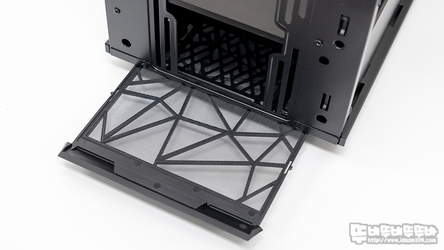 외형적으로 전면에 매쉬 패널과 보통의 미들 케이스 앞 뒤폭의 1.5배에 달하는 넉넉한 길이가 눈에 띄지만 이 제품의 하이라이트는 내부에 있습니다.