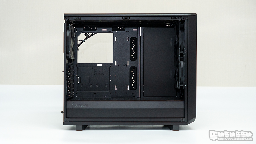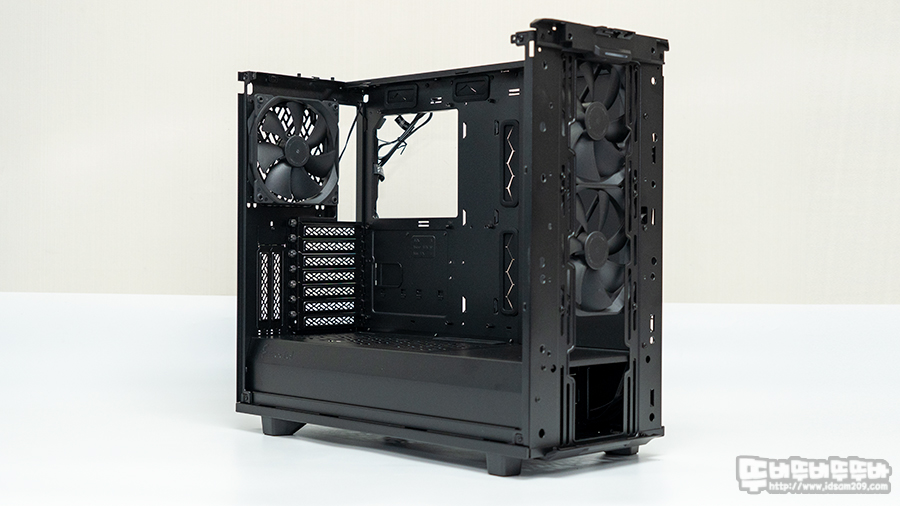 외형적으로 전면에 매쉬 패널과 보통의 미들 케이스 앞 뒤폭의 1.5배에 달하는 넉넉한 길이가 눈에 띄지만 이 제품의 하이라이트는 내부에 있습니다.