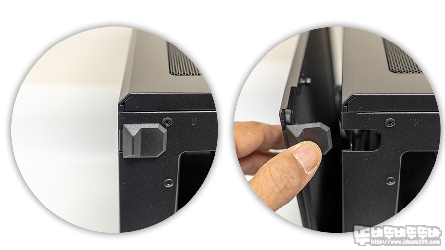 특히 사이드 패널 분리 시 한쪽 손으로 패널을 받치고 한쪽으로 패널 상단의 탈거용 손잡이를 잡아당겨 탈거하시면 보다 안전하게 분리가 가능합니다.