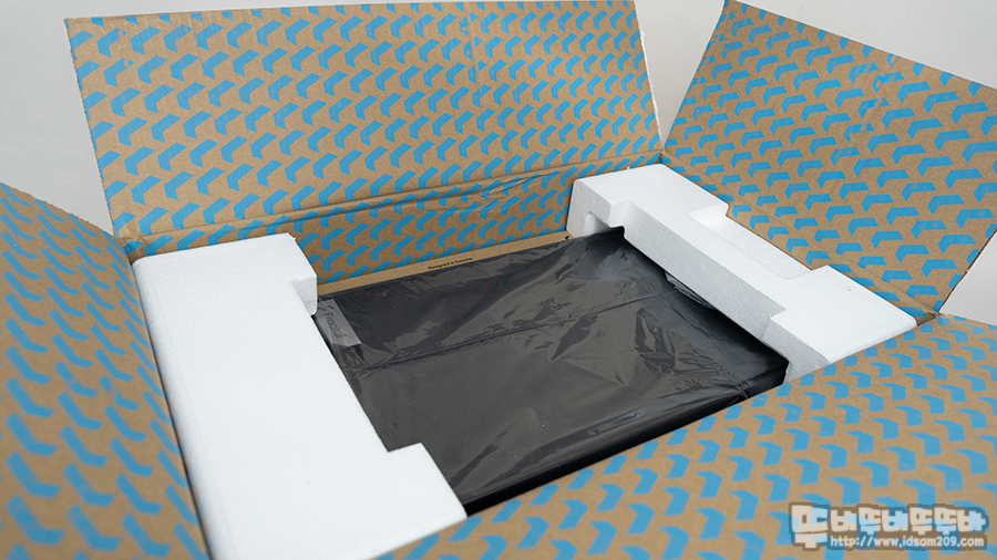 제품은 스티로폼 완충제가 사용되어 배송 중 파손을 방지하며 스티로폼 사이에 보이는 부자재 패키지 박스가 눈에 띕니다.