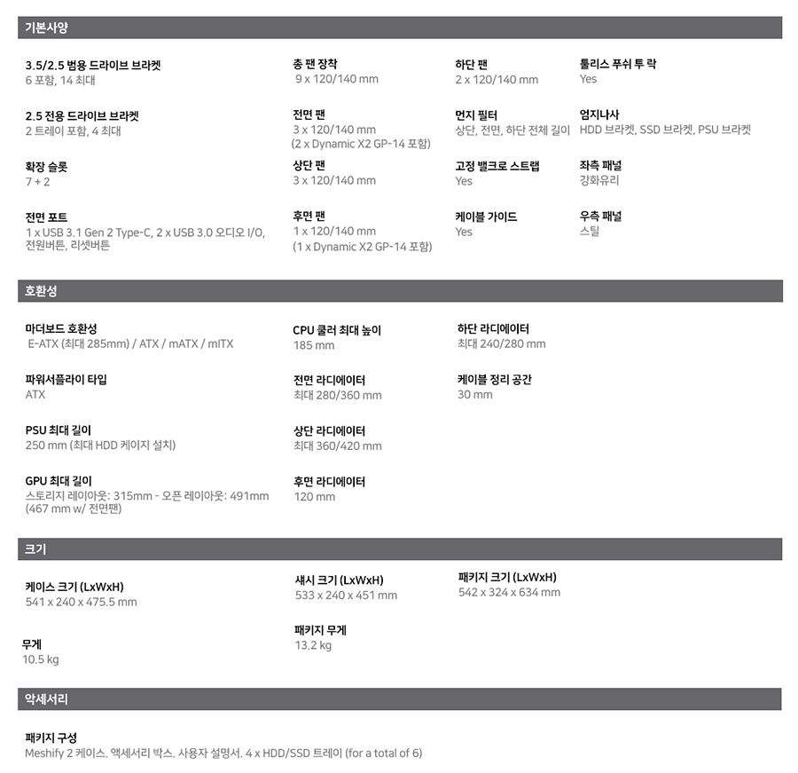 지금까지 Fractal Design Meshify 2 외형과 내부 특징을 살펴보았습니다.