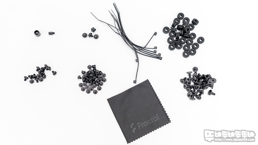 조립 관련 부자재는 메인보드 육각 너트 지지대 및 지지대 결합 툴, 파워서플라이 고정나사, 메인보드 결합용 나사와 SSD 결합 용 나사, 여분의 케이블 타이, 강화유리용 극세사 클리닝, HDD 진동 방지 댐퍼와 HDD 고정나사가 패키지 내용대로 구성되어있습니다.