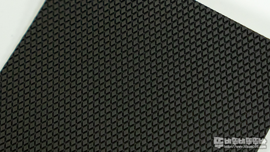 폴리우레탄 표면에 다이아몬드 형태의 쿠키용 틀을 찍은 듯한 느낌으로 밋밋한 표면에 약간의 홈이 있는 형태입니다.