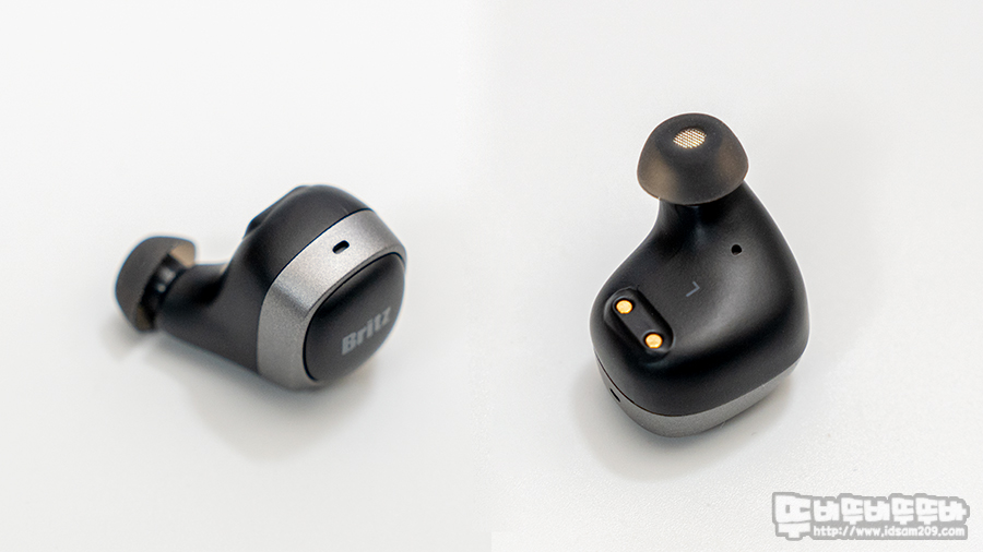 브리츠 HERAPOPTWS의 이어버드 필터 (ear net) 부분은 살펴보면 하우징이 전체적으로 뾰족하게 돌출되는 타입으로 귓속에 안쪽까지 들어가는 전형적인 인이어 타입으로 귓구멍 크기에 따라 실리콘 이어팁을 변경해야 하니 가급적 기본으로 장착된 중간 타입보다 대 → 중 → 소로 변경하여 착용하시는 걸 추천드립니다.