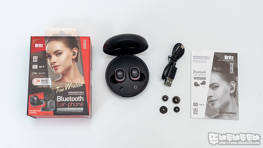 브리츠 HERAPOPTWS 완전 무선 블루투스 이어폰 패키지를 모습입니다.