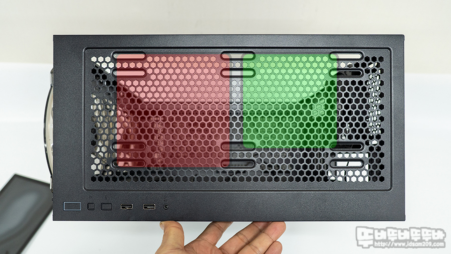 전면의 수냉 쿨러, 고급 파워 서플라이를 사용 시 내부 공간 확보를 위해 가이드 위치 이동이 가능하니 잘 활용하시면 좋을 거 같네요.