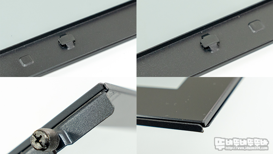 안리(LIAN LI) LANCOOL 215 케이스의 사이드 패널 결합방식은 샤시 전면 프레임에 안쪽으로 파여있는 홈에 패널 전면 쪽에 돌출된 가이드를 밀어 넣어 고정하는 방식 사이드 패널이 결합 시 들뜨는 문제, 진동으로 떨리는 문제 등을 방지하는 효과를 가지고 있습니다.