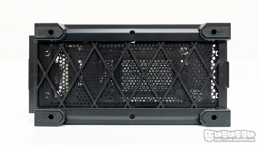 ITX / M-ATX / ATX / E-ATX 메인보드를 수용할 수 있는 넉넉한 샤시 면적을 가지고 있으며 샤시 뒤쪽에서 안쪽으로 케이블이 넘어오는 홀에는 고무 그로밋을 사용하여 케이블이 깔끔하게 보이게 고정하고 가려주는 역할을 합니다.
