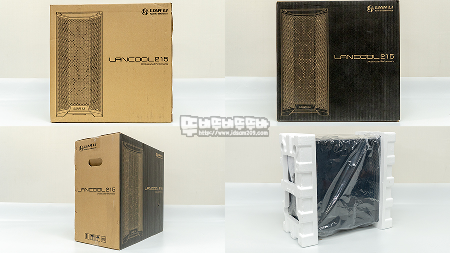 리안리(LIAN LI) LANCOOL 215 케이스 패키지는 제품의 전면 배젤 포인트로 한 심플한 구성으로 리안리 로고와 제품 모델명이 부각되는 디자인이 적용되었습니다.