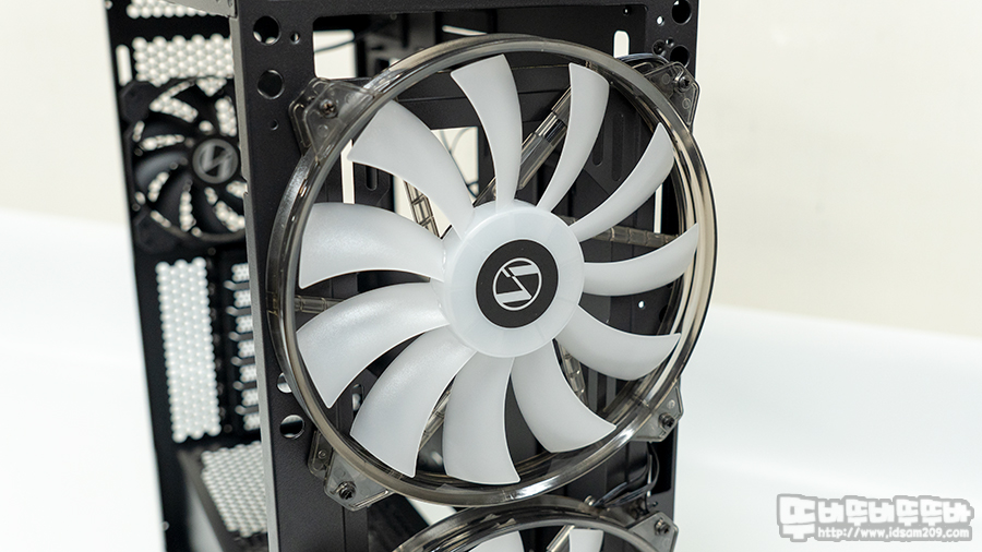 샤시 안쪽 또는 바깥쪽으로 120/140mm 쿨러 및 최대 360 수냉 라디에이터 장착이 가능하며 상황에 따라 200m 쿨러 장착 또는 제거로 사용할 수 있습니다.