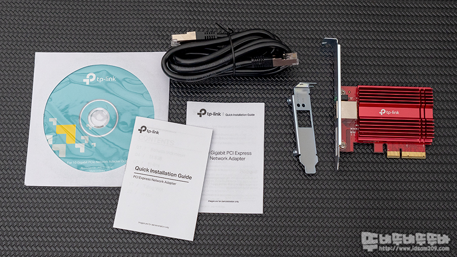 제품 구성으로는 사용설명서 및 퀵 가이드, 설치 CD, TX401 유선 랜카드 본체, LP 브라켓, 1.5m CAT6A 랜케이블로 구성되어있습니다.