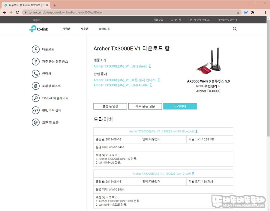 시스템 부팅 후 티피링크 사이트에 접속하여 Wi-Fi용 드라이버와 블루투스 드라이버를 차례대로 설치해줍니다.